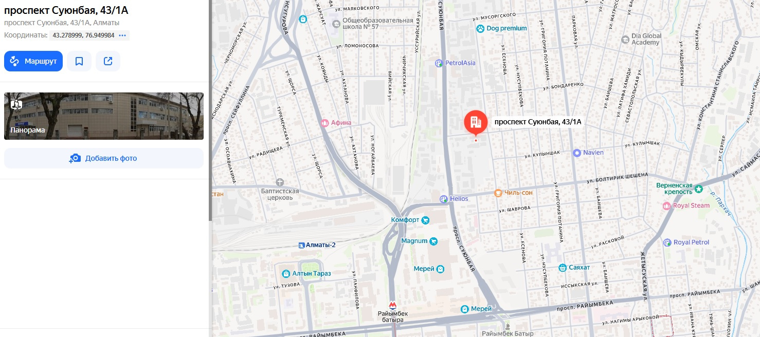 Республика Казахстан, город Алматы проспект Суюнбая 43/1А